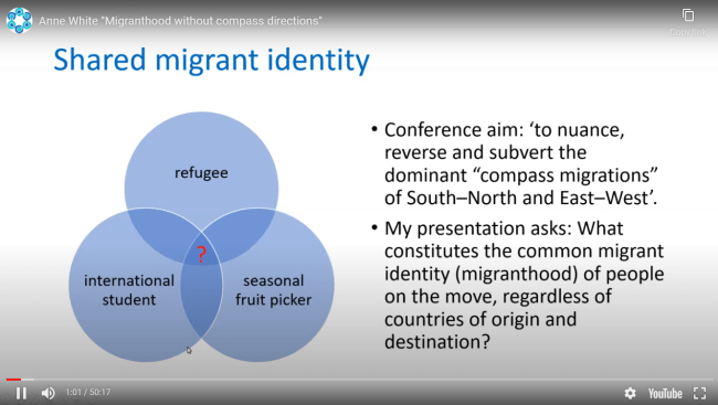 Recording of the keynote lecture by Anne White ‘Migranthood without compass directions’